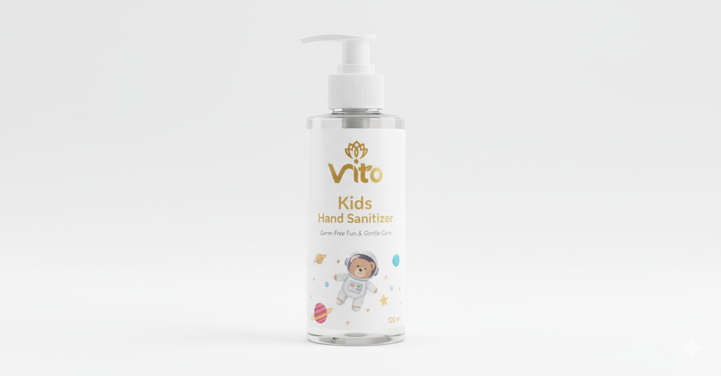 Vito Kids Hand Sanitizer is specially formulated to protect your child’s hands while keeping them soft and clean. It eliminates 99.9% of germs without drying the skin, thanks to its gentle, alcohol-balanced formula enriched with soothing moisturizers.
